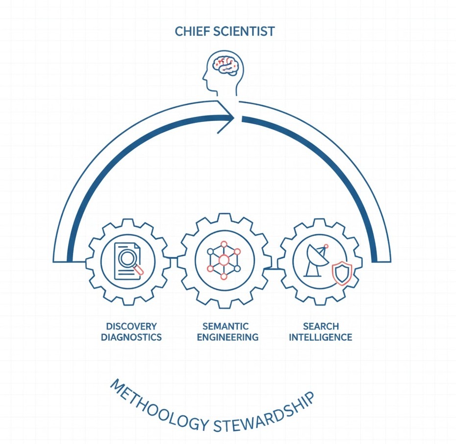 This role exists to ensure that the methodology remains evidence-led, technically rigorous, and aligned with how modern discovery systems actually function.
